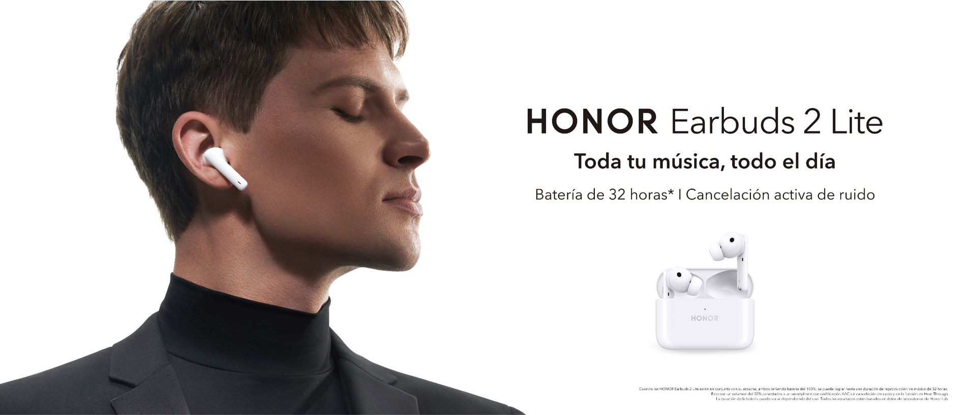 Incorporando una duración de batería líder en la industria, tecnologías de Cancelación Activa de Ruido (CAR) y conectividad mejorada, todo dentro de un diseño ergonómico, los HONOR Earbuds 2 Lite brindan una experiencia auditiva de primera clase, lo que los hace ideales para entusiastas del entretenimiento quienes exigen una calidad de audio impecable.
